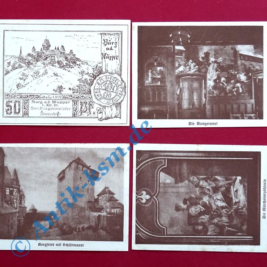 Notgeld Burg , Bürgermeisterei , 4 x 50 Pfennig , Mehl Grabowski 209.1 , von 1921 , Westfalen Seriennotgeld