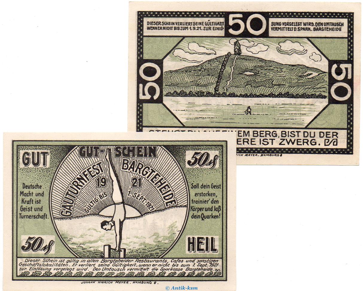 Notgeld Gauturnfest Bargteheide 63.1 , Set mit 2 Scheinen in kfr. von 1921 , Schleswig Holstein Seriennotgeld