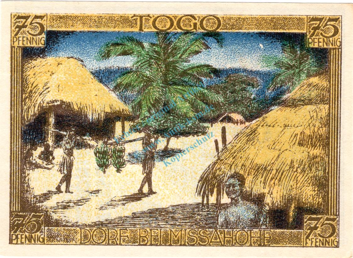 75 Pfennig Schein Nr.4 : Togo / Dorf bei Missahohe