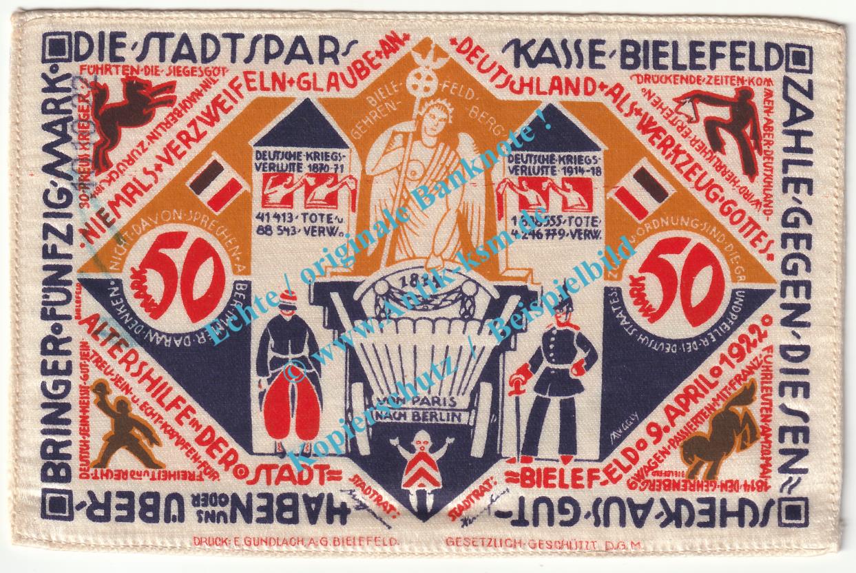 Gutschein / Banknote der Stadt Bielefeld --Seide-- , Seriennotgeld