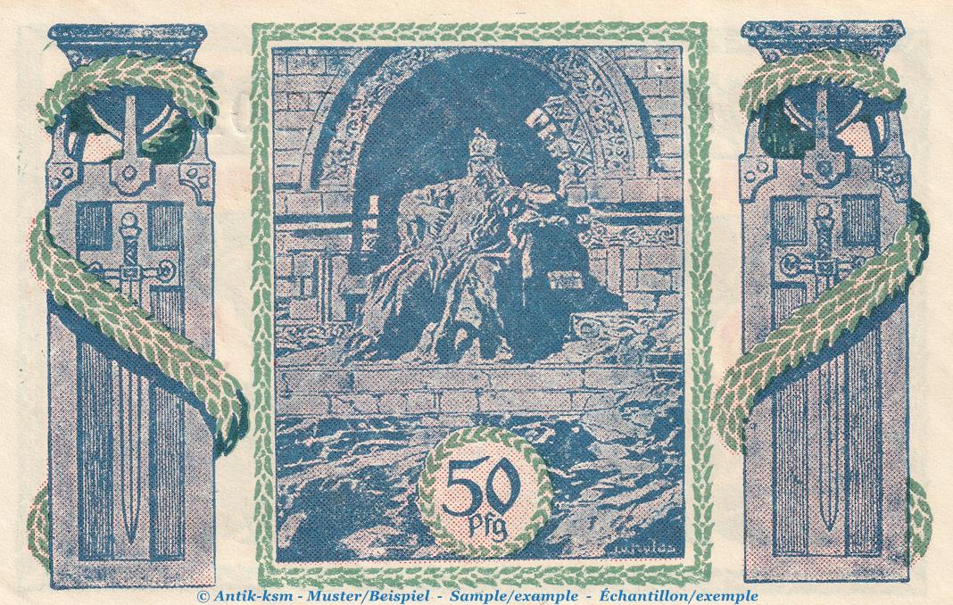 Notgeld RKB Kyffhäuser Berlin 91.1 , 50 Pfennig Schein -F- in kfr. von 1921 , Brandenburg Seriennotgeld