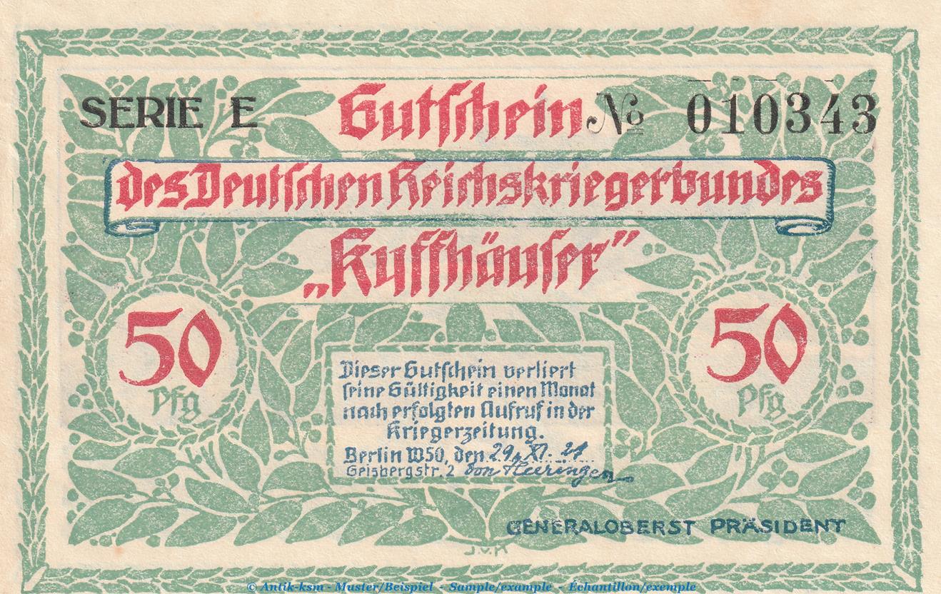 Gutschein / Banknote Reichskriegerbund "Kyffhäuser" Berlin , Seriennotgeld