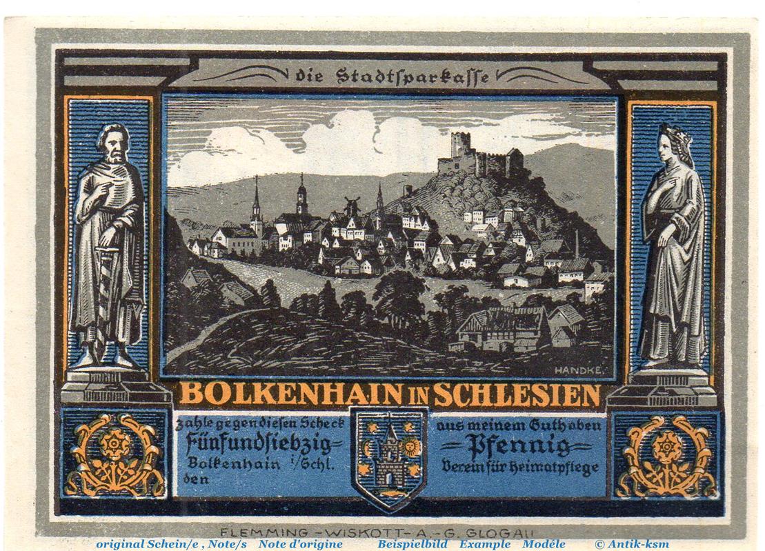 Notgeld V.f. Heimatpflege Bolkenhain 137.3 , 75 Pfennig Schein mit Wz. o.D. Schlesien Seriennotgeld