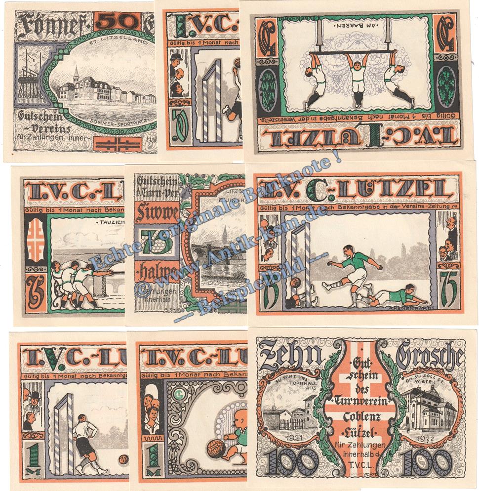 Coblenz , Notgeld T.V.C Set mit 9 Scheinen in kfr. M-G 234.1 , Rheinland o.D. Seriennotgeld