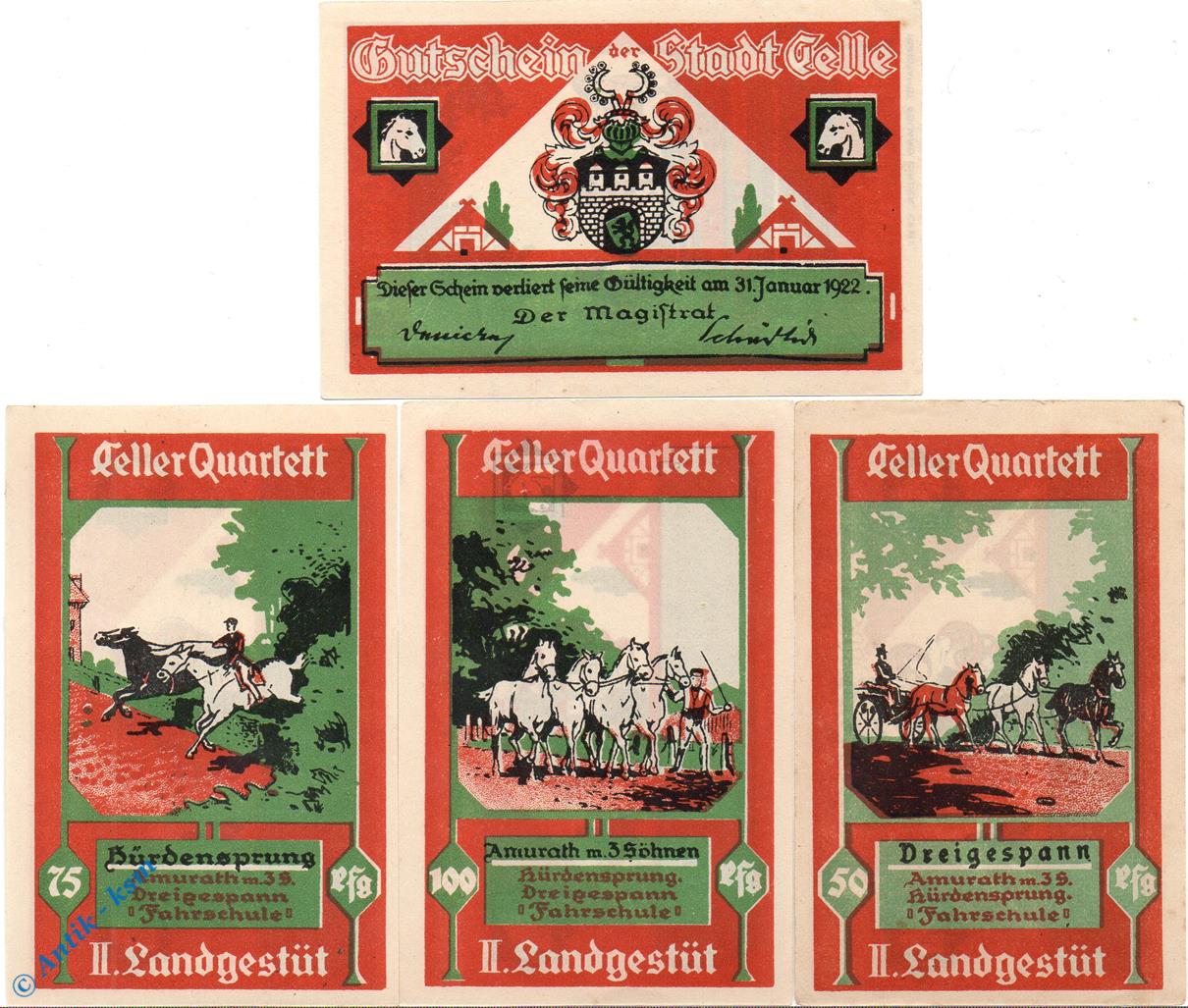 Notgeld Celle , Landgestüt , Set mit 4 Scheinen in kfr. Mehl Grabowski 226.2 , Niedersachsen Seriennotgeld