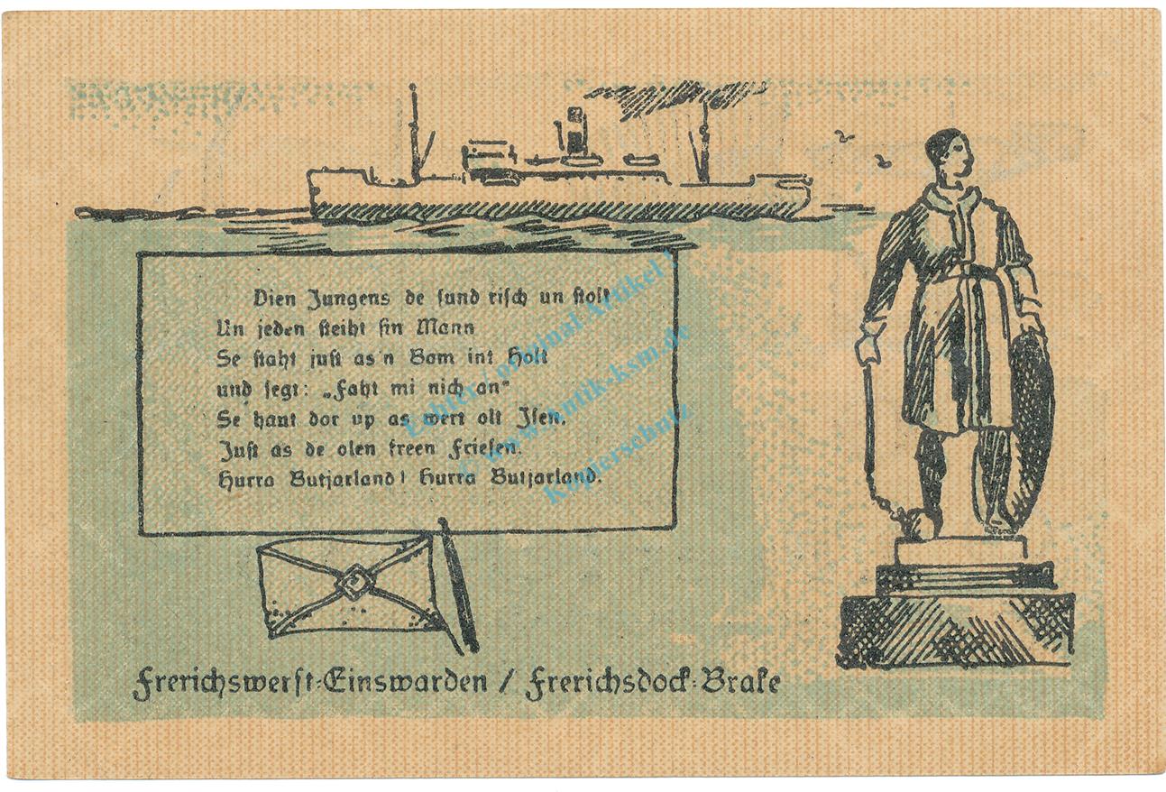 Seriennotgeld : J. Frerichs & Co. A.G. Oldenburg / NDS, 50 Pfennig Nr.3 - Dien Jungens... , WZ = ZickZacklinien