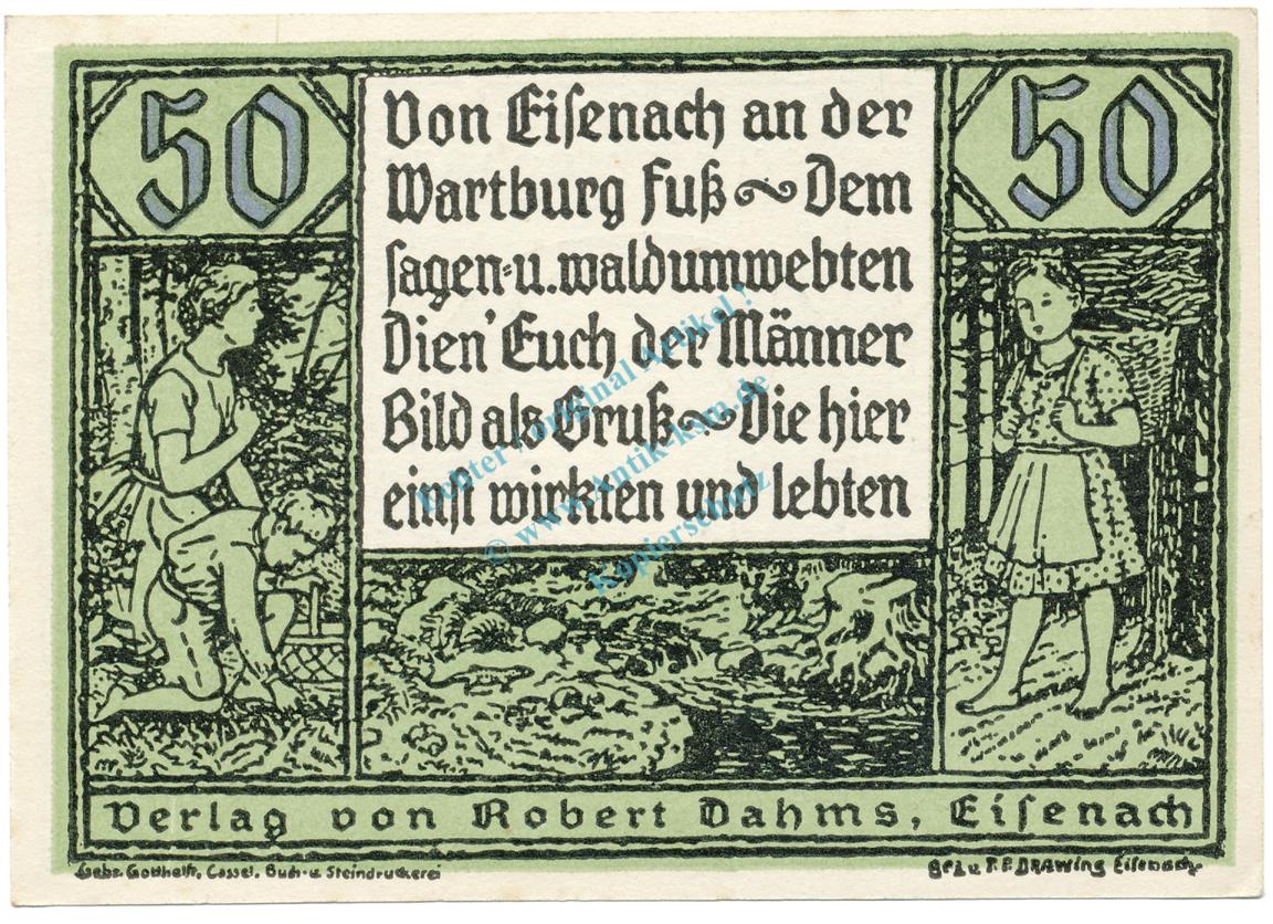 Eisenach , Notgeld 50 Pfennig Schein Nr.6 unc-kfr. M-G 318.1 , TH o.D. Seriennotgeld -5730-