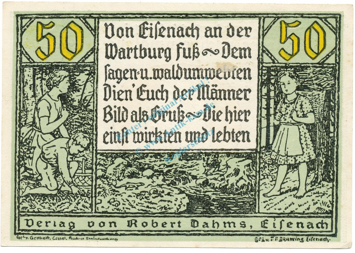 Eisenach , Notgeld 50 Pfennig Schein Nr.8 unc-kfr. M-G 318.1 , TH o.D. Seriennotgeld -5732-