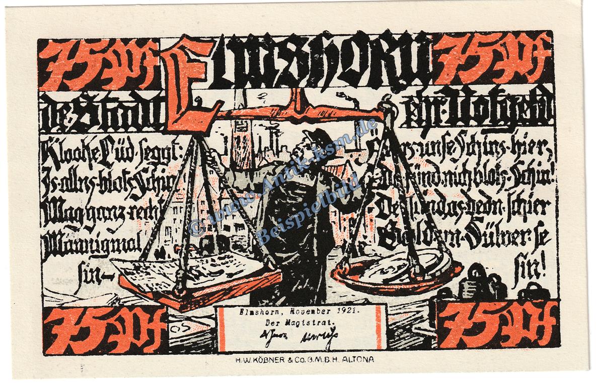 Gutschein / Banknote der Stadt Elmshorn , Seriennotgeld