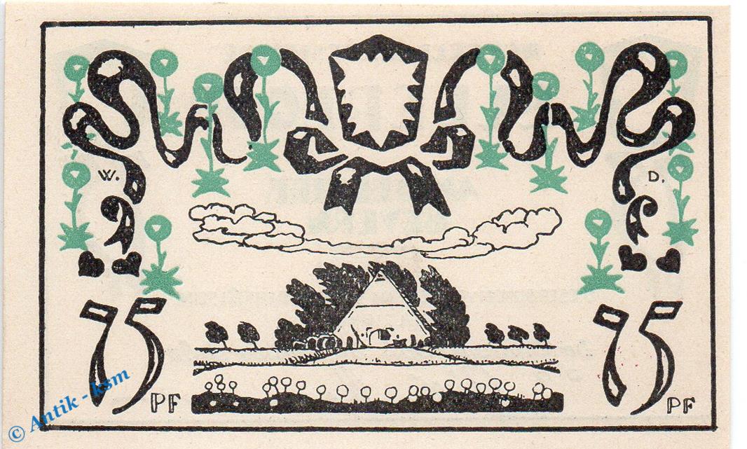 Der Notgeldsatz besteht aus : 75 Pfennig Schein Nr 2 , Haus