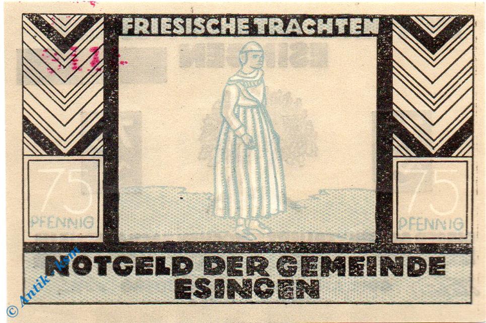Notgeld Esingen , 75 Pfennig Schein Nr 1 , Mehl Grabowski 353.1 , Schleswig Holstein Seriennotgeld