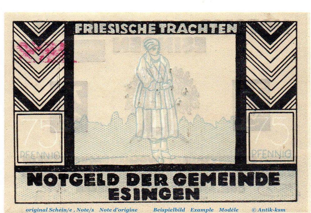 Notgeld Gemeinde Esingen , 353.1 , 75 Pfennig Schein Nr 2 in kfr. o.D. Schleswig Holstein Seriennotgeld