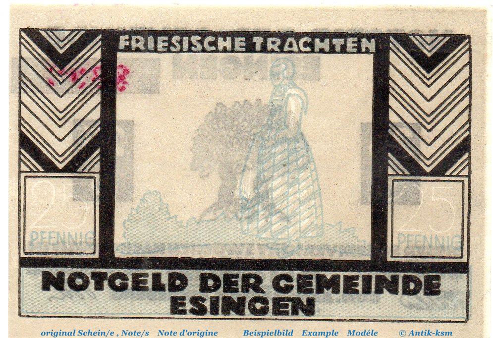Notgeld der Gemeinde Esingen 353.1 , 25 Pfennig Schein Nr 2 in kfr. o.D. Schleswig Holstein Seriennotgeld