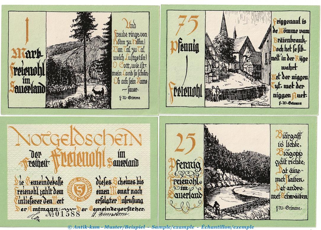 Notgeld Gemeinde Freienohl 384.1 , Set -grün- mit 4 Scheinen in kfr. o.D. Westfalen Seriennotgeld