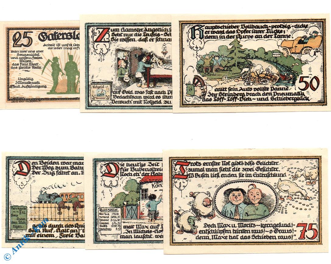 Notgeld Gatersleben , Wilhelm Busch , Set mit 6 Scheinen , Mehl Grabowski 409.1 , Sachsen Anhalt Serien Notgeld