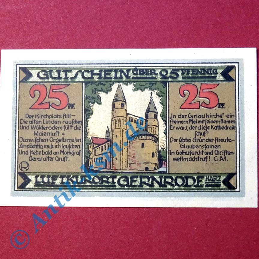 Notgeld Gernrode , 25 Pfennig ohne Kennummer , Mehl Grabowski NICHT belegt , von 1921 , Sachsen Anhalt Seriennotgeld