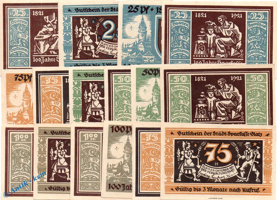 Notgeld Glatz , Volkslieder , Set mit 16 Scheinen in kfr. Mehl Grabowski 432.1 , Schlesien Seriennotgeld