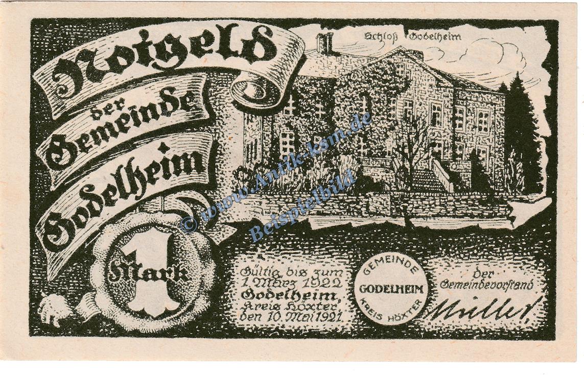 Banknote , Notgeld der Gemeinde Godelheim , Seriennotgeld