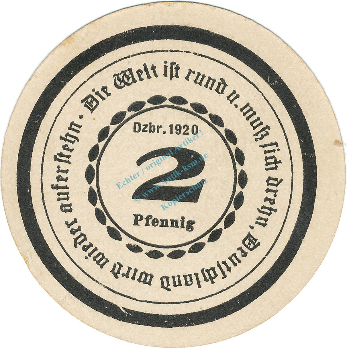 Görlitz , Notgeld 2 Pfennig Schein unc-kfr. M-G 449.4 , SLN 1920 Seriennotgeld -5794-
