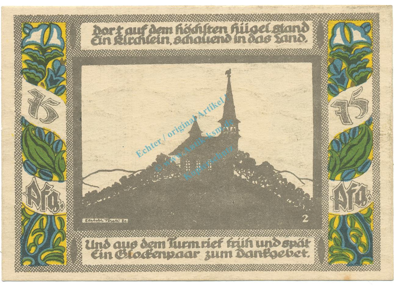 Gollnow , Notgeld 75 Pfennig -Nr.2 Glocke- unc-kfr. M-G.453.4 , POM 1921 Seriennotgeld -5830-