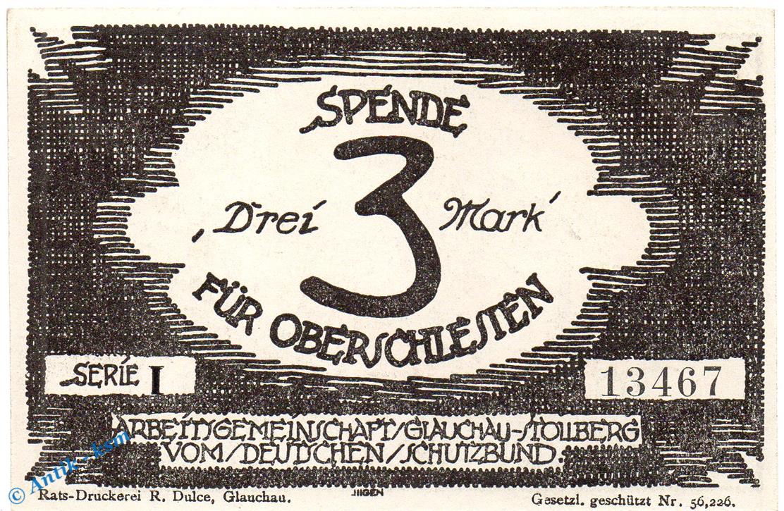 Notgeld Glauchau Stollberg , 3 Mark Schein Nr 2 , Mehl Grabowski 433.1 , Sachsen Seriennotgeld