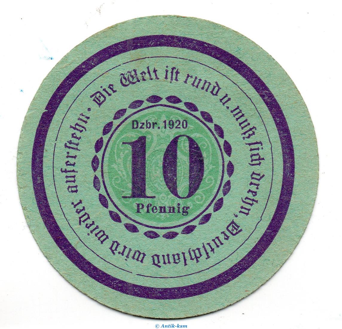 Der Notgeldsatz besteht aus : 10 Pfennig Schein , WZ 10,5 mm