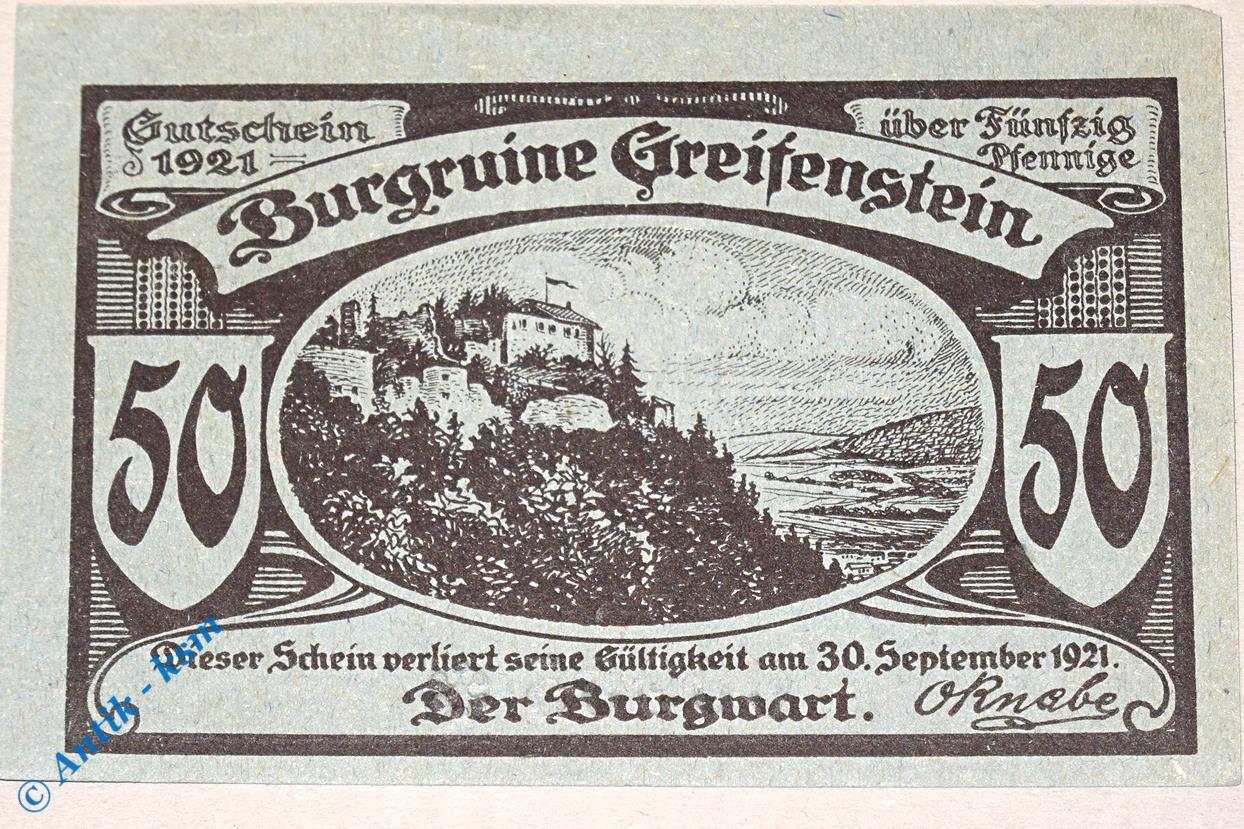 Notgeld Greifenstein , 50 Pfennig Schein Nr 3 , Mehl Grabowski 469.1 , Thüringen Seriennotgeld