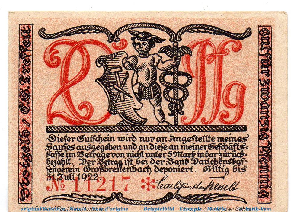 Notgeld Kleinkunstindustrie Tesselt , Großbreitenbach , Seriennotgeld , orangebraun