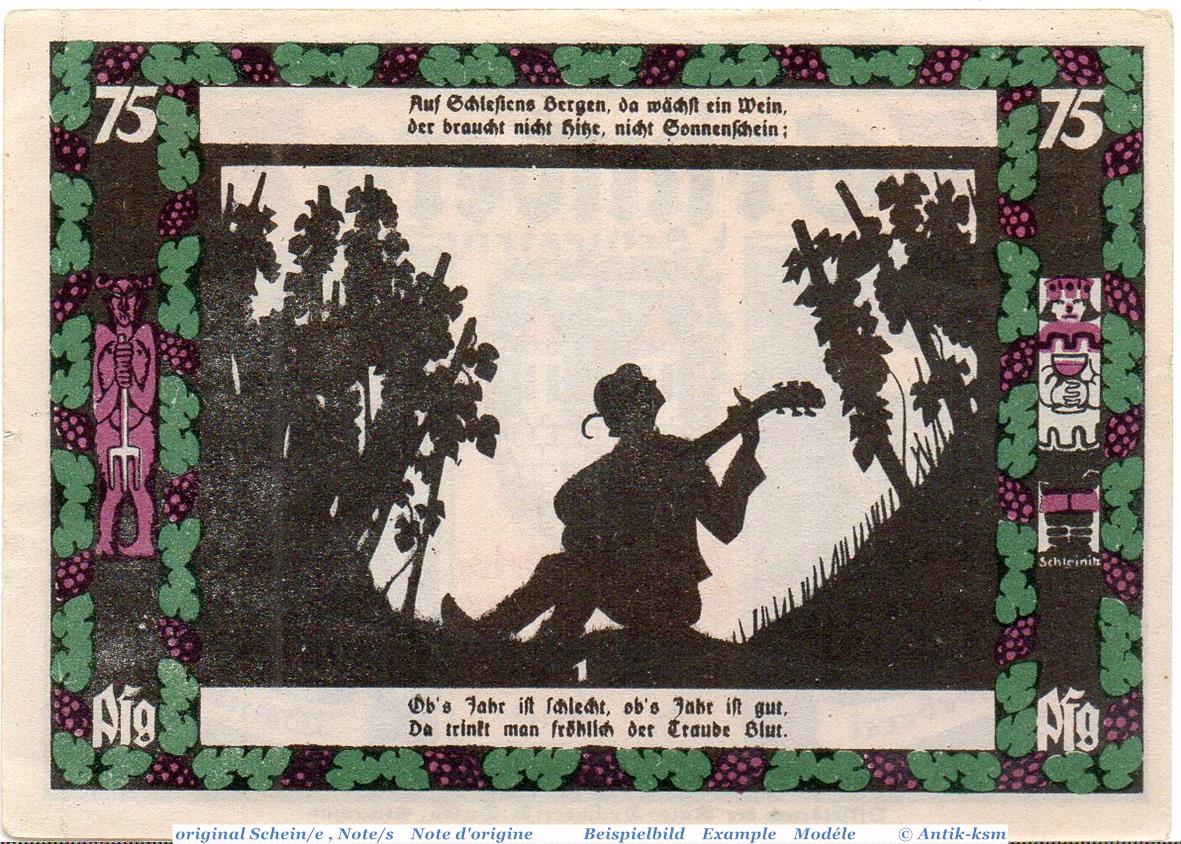 Der Notgeldsatz besteht aus : 75 Pfennig Schein Nummer 1 , Papier sehr dünn