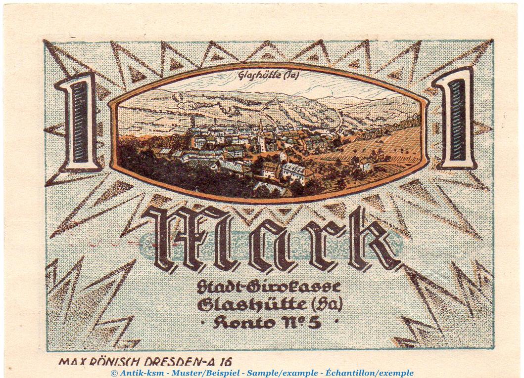 Der Notgeldsatz besteht aus : 1 Mark Schein Nr.4 , Glashütte