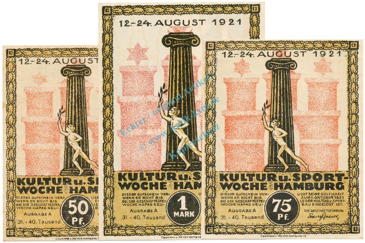 Seriennotgeld : Kutur und Sportwoche Hamburg , Ausgabe A , 31 bis 40 Tausend
