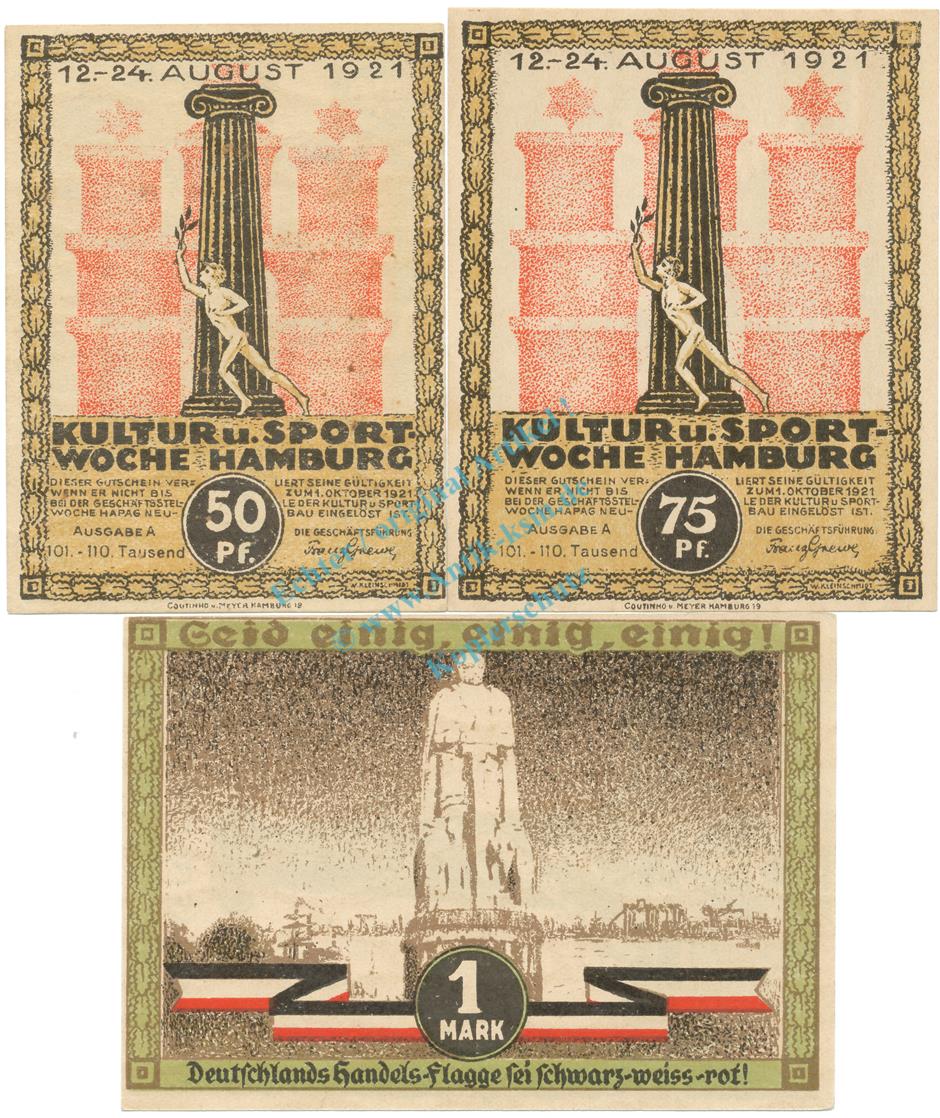 Hamburg , Notgeld Set 3 Scheine unc-kfr. M-G 539.2.K , HH 1921 Seriennotgeld -5745-