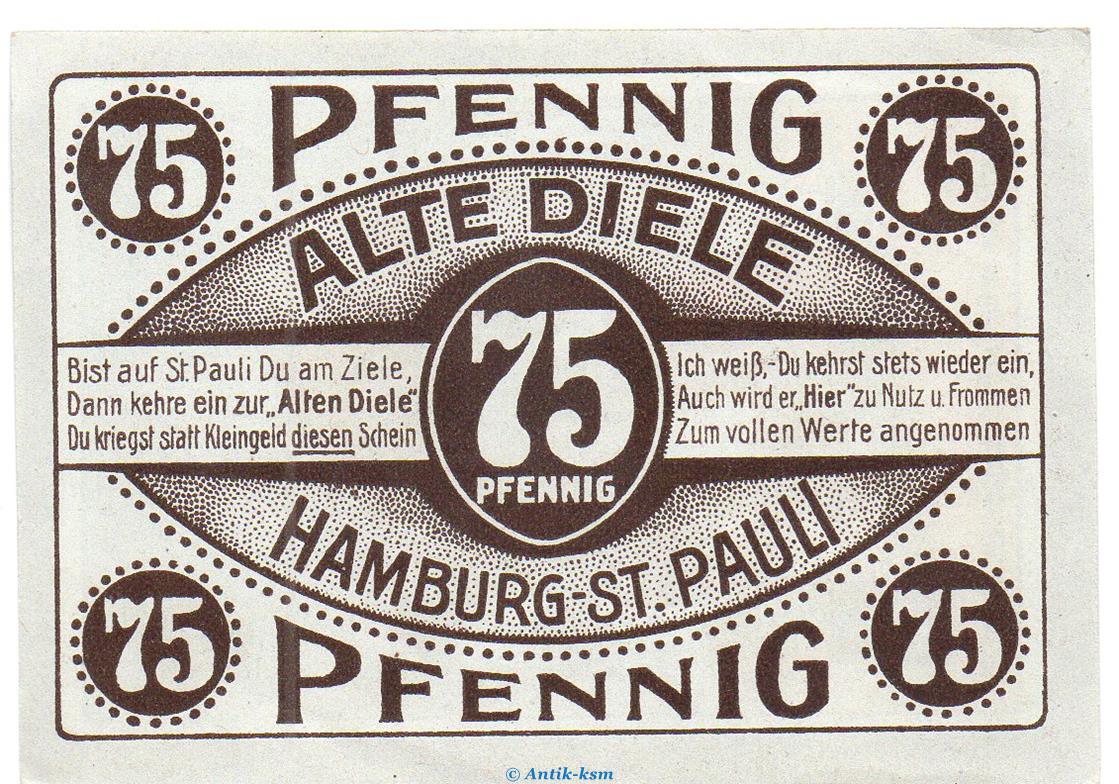 Notgeld Alte Diele Hamburg 515.2 , 75 Pfennig Schein in kfr. o.D. Hamburg Seriennotgeld