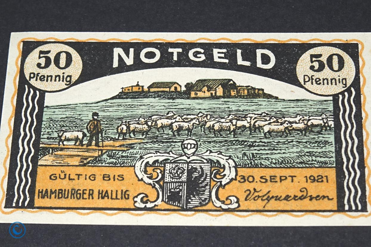 Notgeld Hamburg Hallig , 50 Pfennig Schein , Wolken , Mehl Grabowski 564.2 a , Hamburg Seriennotgeld