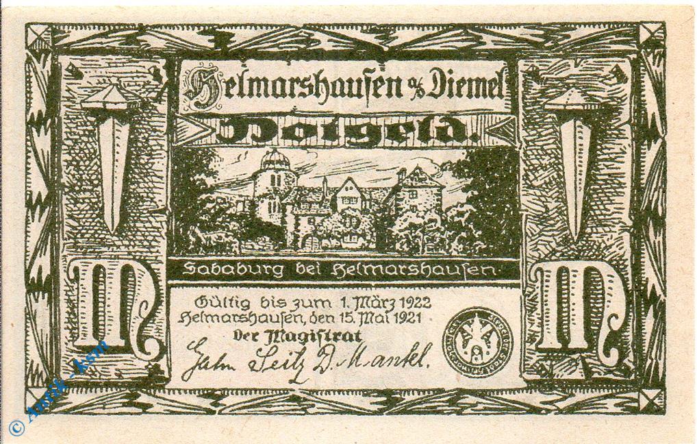 Serien Notgeld der Stadt Helmarshausen , Druck oliv