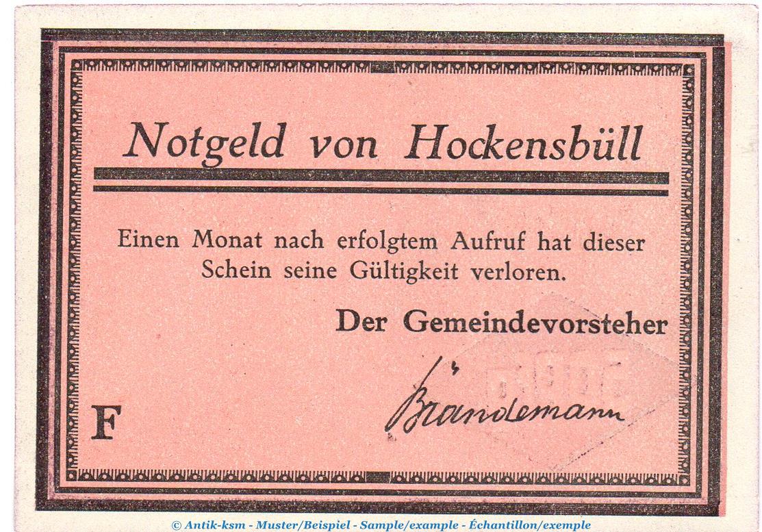 Gutschein , Notgeld der Gemeinde Hockensbüll , Seriennotgeld