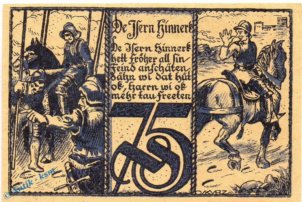 Der Notgeldsatz besteht aus : 75 Pfennig Schein 1 , blau
