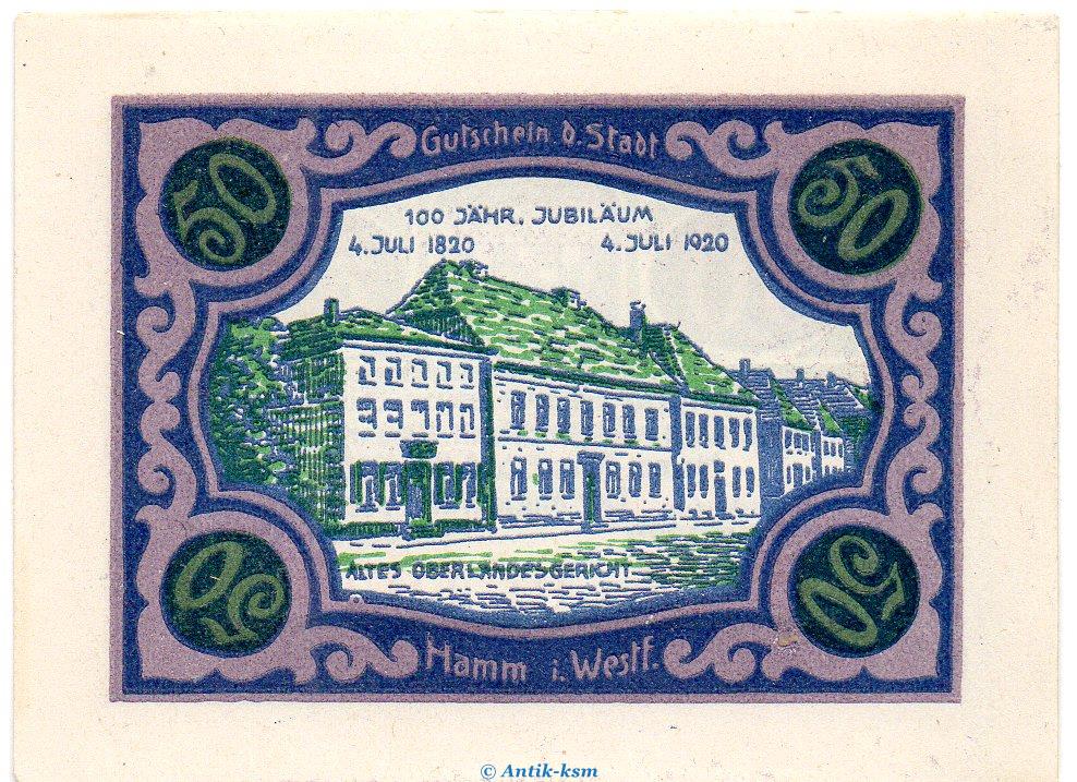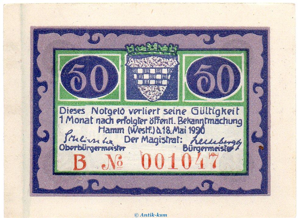 Banknote , Notgeld der Stadt Hamm , Seriennotgeld , breiter Rand