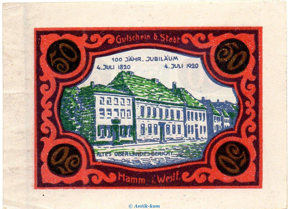 Banknote , Notgeld der Stadt Hamm , Seriennotgeld , breiter Rand