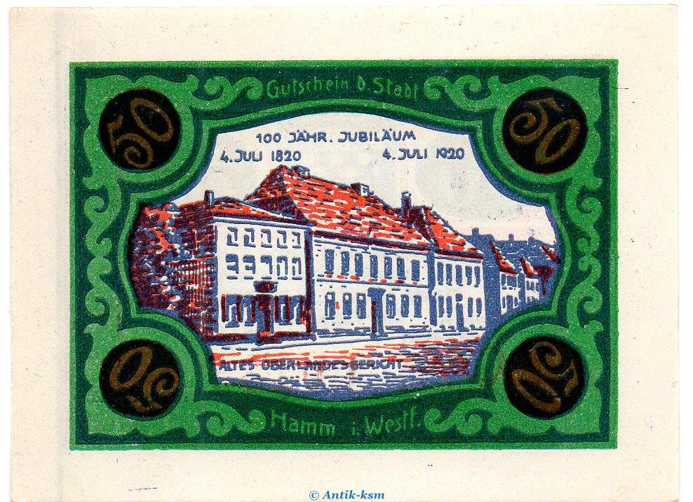 Banknote , Notgeld der Stadt Hamm , Seriennotgeld , breiter Rand