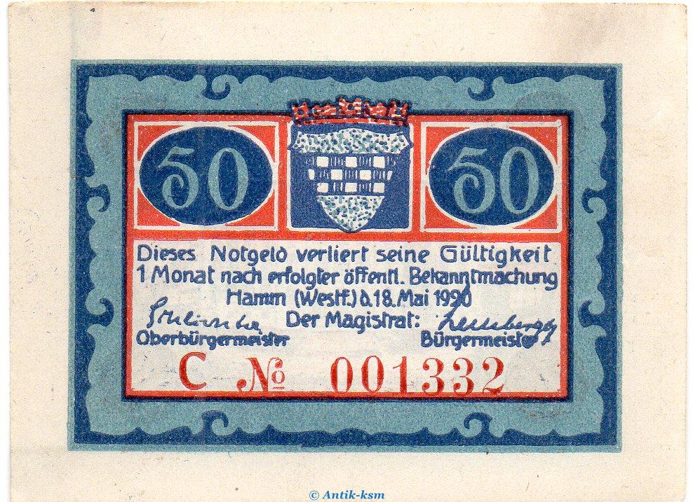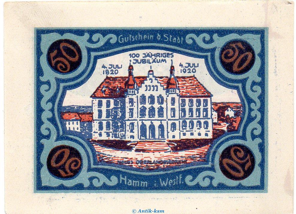Banknote , Notgeld der Stadt Hamm , Seriennotgeld , breiter Rand