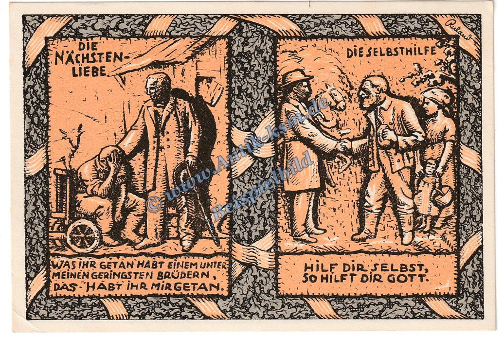 Das Notgeld Set besteht aus 1 x : 50 Pfennig Schein -Nächsten Liebe" Vs. Udr. gelb