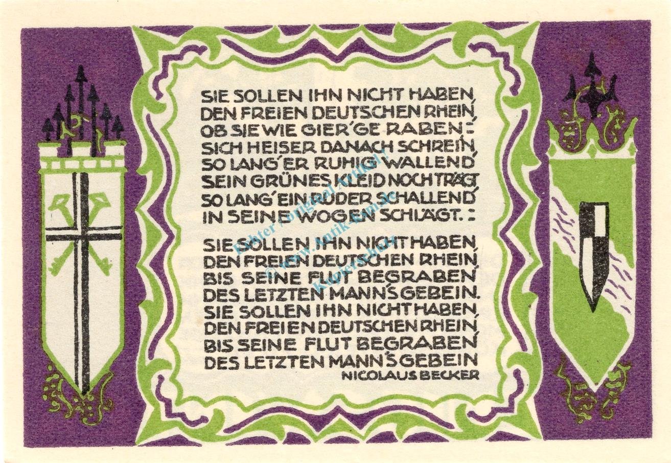 Königswinter , Notgeld 50 Pf. --Sie sollen Ihn...1503-- in kfr. M-G 730.2.c Westfalen 1921 Seriennotgeld