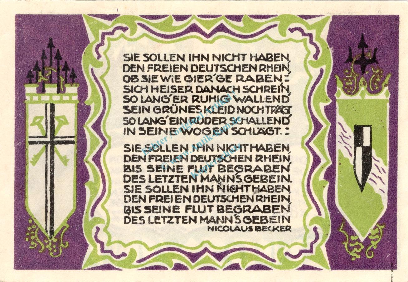 Königswinter , Notgeld 50 Pf. --Sie sollen Ihn...1509 WZ-- in kfr. M-G 730.1 Westfalen 1921 Seriennotgeld