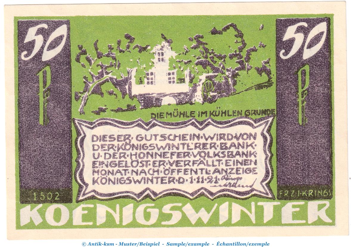 Gutschein / Banknote Königswinterer Bank und Honnefer Volksbank Königswinter , Seriennotgeld