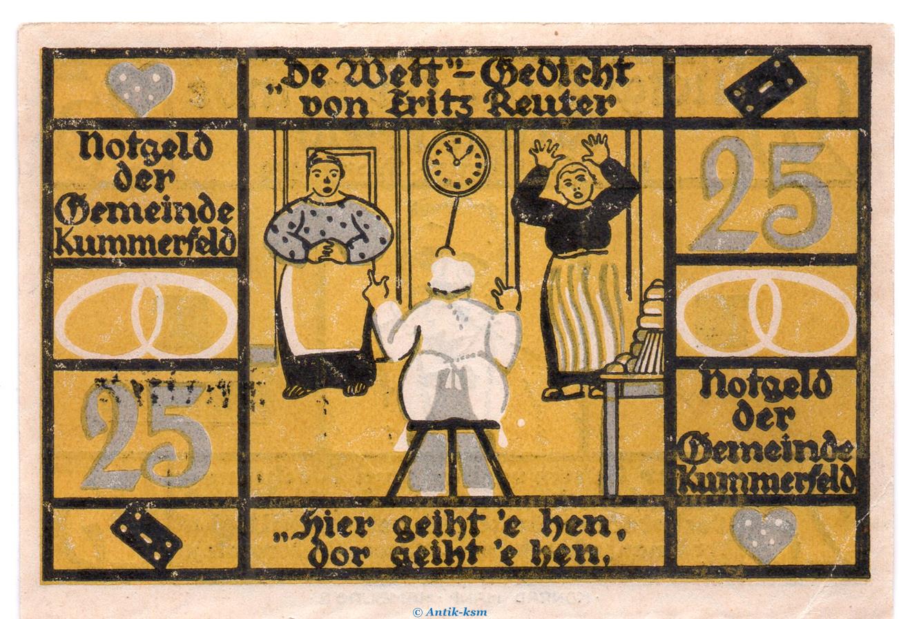 Banknote , Notgeld der Gemeinde Kummerfeld , Seriennotgeld