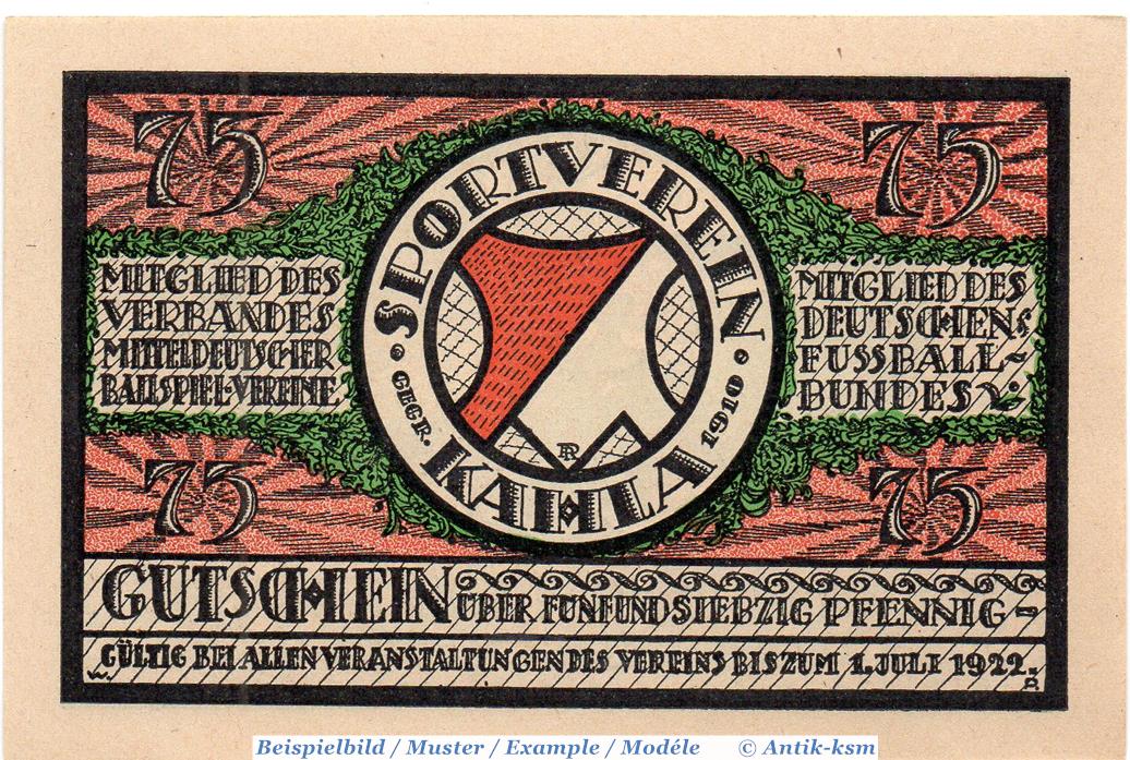 Der Notgeldsatz besteht aus : 75 Pfennig Schein Gruppe 5 , Unterdruck gepunktet