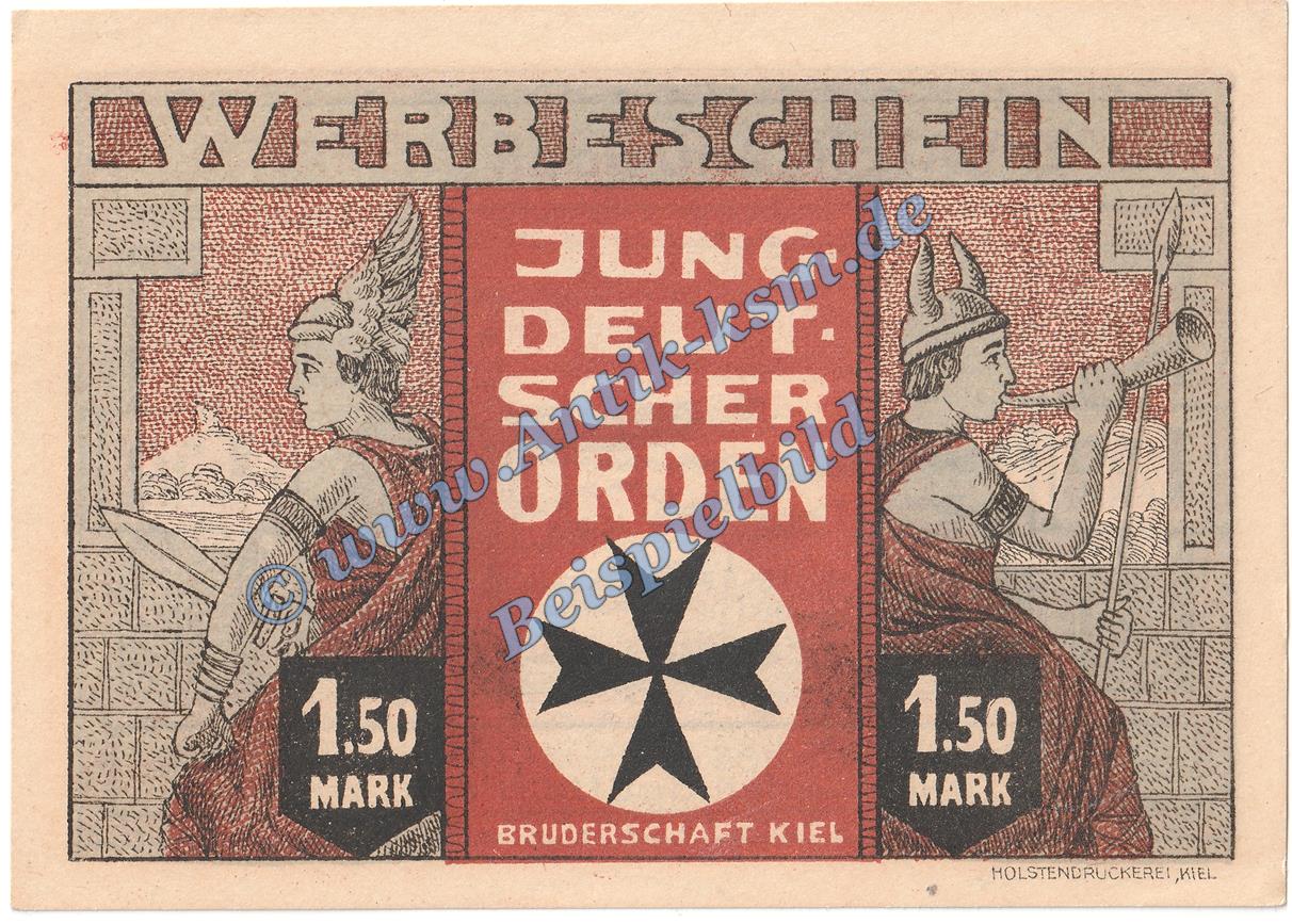 Kiel , Notgeld 1,50 Mark -Jundeutscher Orden- in kfr. M-G 694.1 , Schleswig o.D. Seriennotgeld
