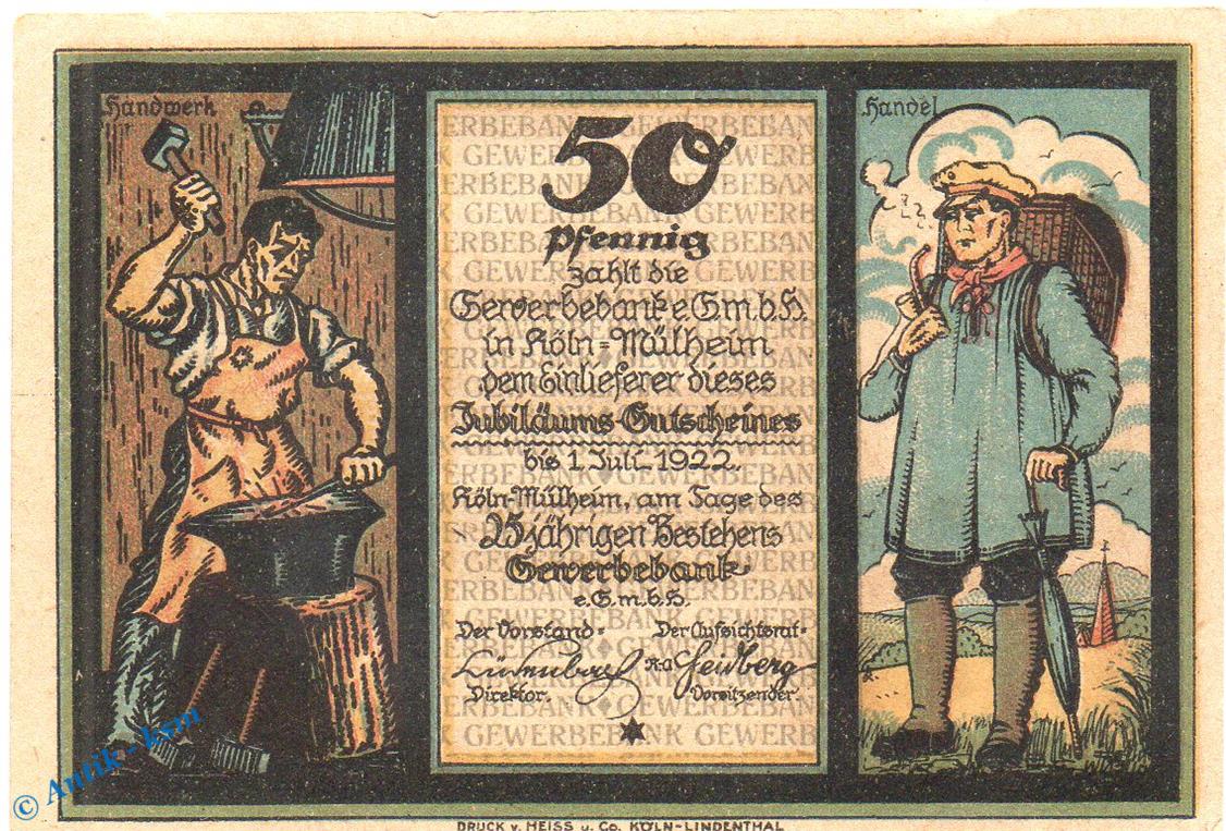 Serien Notgeld der Gewerbebank e.G.m.b.H , Köln - Mühlheim