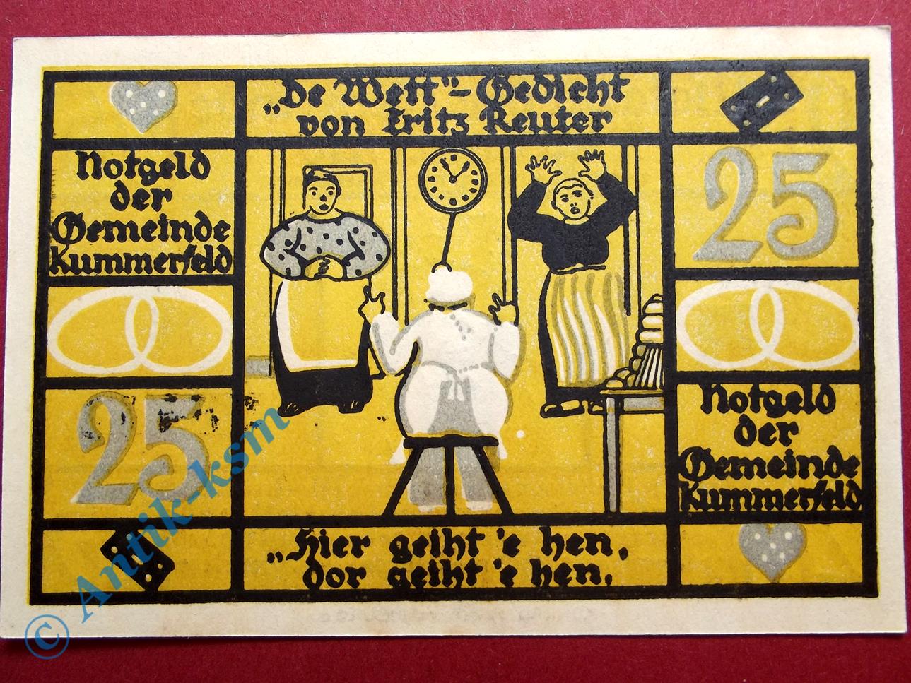 Notgeld Kummerfeld , 25 Pfennig Schein Nr 2 , Mehl Grabowski 749.9 A , Schleswig Holstein Seriennotgeld